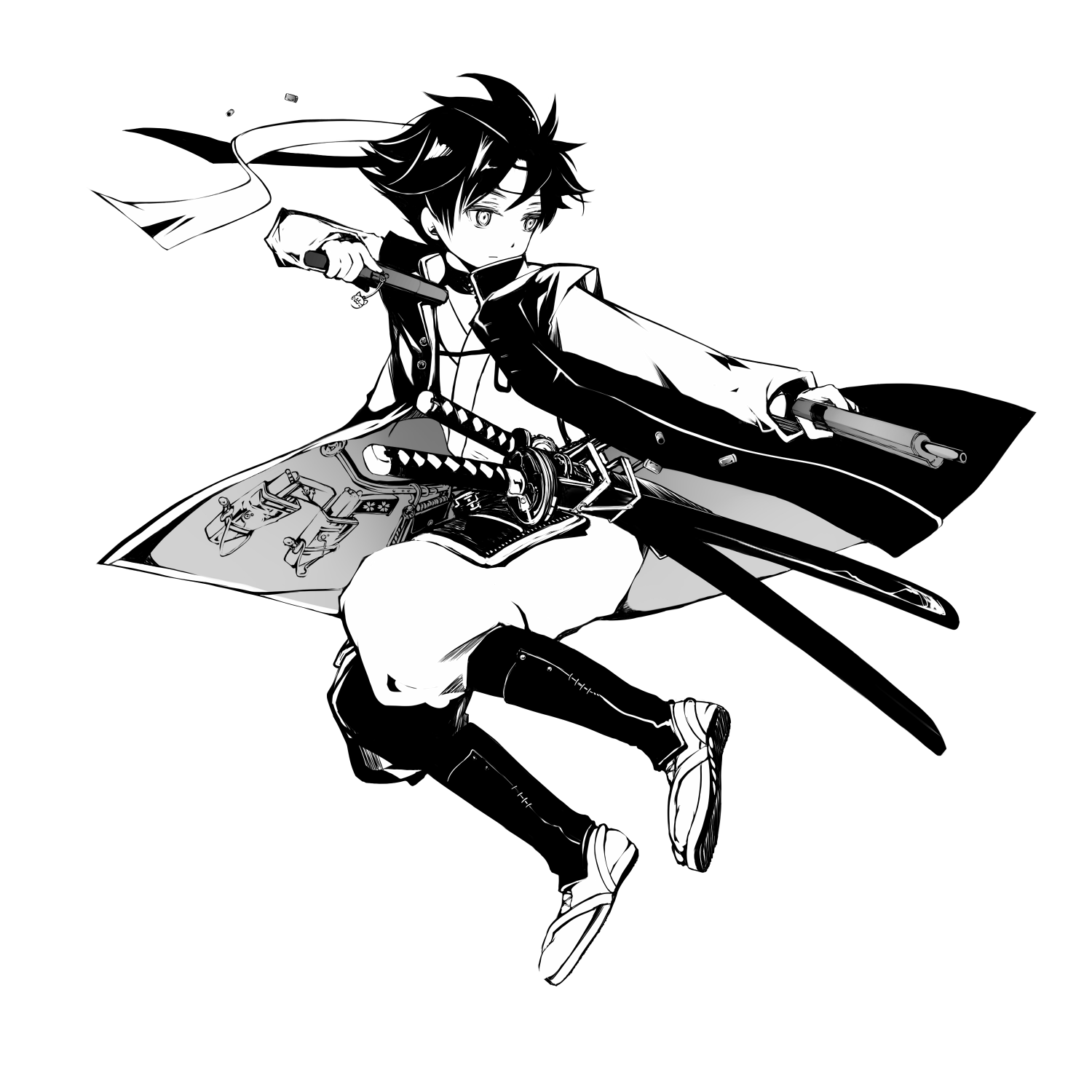 こもも ももけた Twitter પર 新曲きたよ 今回もイラストお手伝いさせて頂きました 陣羽織 学ランぽくして鉢巻 二丁拳銃と刀で戦う男の子 こう くるっくるっとスピード感ありそうな戦いしそうな感じに 間奏のとこお気に入り 是非まだの方は動画にgo Http